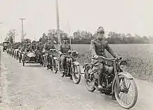 En 1917, les États-Unis entrent en guerre en Europe. Les forces armées américaines demandent des motos. Elles en avaient déjà utilisées dans des escarmouches avec Pancho Villa, mais la Première Guerre mondiale est le premier conflit avec une utilisation massive de motos, puisque vingt mille machines y seront affectées dans plusieurs versions, notamment porte-mitrailleuse ou side-car. L'essentiel de ces motos est fourni par Harley qui, pendant la guerre, consacre environ la moitié de sa capacité de production aux modèles destinés à l'armée, dotés du moteur Flat Head de 61 ci (1 000 cm3)[23]. Harley crée en outre un programme de formation de mécaniciens militaires, qui sera ensuite reconverti pour former des civils[25].