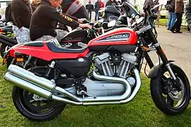 - XR1000 : deux pots d'échappement plats en position haute à gauche et deux filtres de type K&N décalés alimentant les carburateurs Dell'Orto à droite. Moteur de 1 000 cm3 avec une combinaison de pièces de XLX Sportster et de pièces modifiées de XR-750[10].