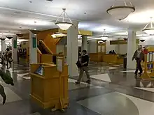 Le centre du hall offre une vue sur le deuxième niveau et le sous-sol qui abrite un auditorium de 385 places, une salle de réception, un théâtre audio-visuel et des salles de réunion. Sur son mur nord, on peut admirer une mosaïque de Jacob Lawrence intitulée Events in the Life of Harold Washington (en français : « La Vie de Harold Washington »). Elle représente les étapes de la vie de l'ancien maire comme ouvrier du Civilian Conservation Corps, soldat, avocat, membre du Congrès des États-Unis et comme maire de Chicago. Chacune de ces étapes est représentée sous la forme de pages de livres ouverts sur son bureau. Les pages forment une pile dont le sommet représente l'élection de Washington en tant que premier maire afro-américain de la ville.