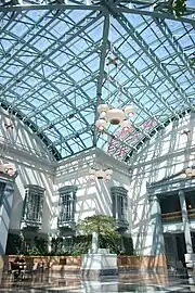 Le neuvième niveau s'ouvre sur un immense jardin d'hiver surplombé par une verrière de plus de 30 mètres de haut. Ce niveau, de par sa conception, constitue un espace de détente avec ses plantes en pots, ses plantes tombantes, etc.