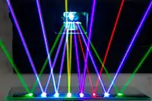 - Exemple en vidéo sur YouTube : (en) Maurizio Carelli, « Kromalaser hymn played with Bi-Color Laser Harp », (consulté le )