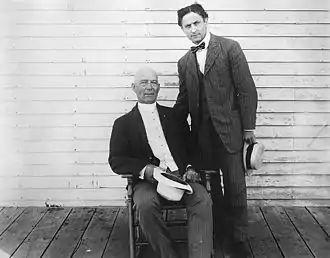 Harry Houdini (debout) aux côtés de Harry Kellar (assis)