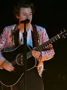 Depuis qu'il a quitté One Direction, Styles choisi de faire des tournées en tant qu'artiste rock avec un groupe d'accompagnement[97]. En plus du chant, il joue de la guitare acoustique dans son groupe[98]. Le guitariste principal Mitch Rowland et sa partenaire, la batteuse et chanteuse Sarah Jones, l'accompagnent sur ses tournées[99]. Sa présence sur scène est comparée à celle de Freddie Mercury ou de Mick Jagger, tandis que son charisme et son sens de l'humour l'apparentent à Rod Stewart[100],[101].