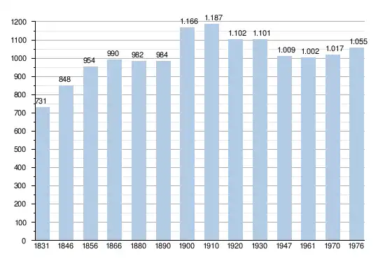 - Sources:INS, Rem:1831 jusqu'en 1970=recensements, 1976= nombre d'habitants au 31 décembre