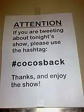 De même, le hashtag est de plus en plus utilisé par des émissions télévisées, des concerts ou spectacles. Les producteurs recommandent souvent aux spectateurs d'utiliser un hashtag précis, afin de réunir également les personnes sur les réseaux sociaux. Cela permet de faire parler du spectacle ou de l'émission sur Internet et donc d'obtenir de la publicité. Ce hashtag peut également être utilisé par les internautes afin de poser des questions en direct ou de réagir. Les émissions de télévision utilisent alors parfois des réactions venant d'Internet pour diffuser des réactions en direct[réf. nécessaire].