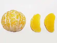 Le péricarpe (partie blanche qui entoure la pulpe) est épais et difficile à peler [13]. Les 10 à 12 quartiers contiennent des pépins qui peuvent être réduits si la fleur a été fécondée avec le pollen de C. natsudaidai Hayata [14].
