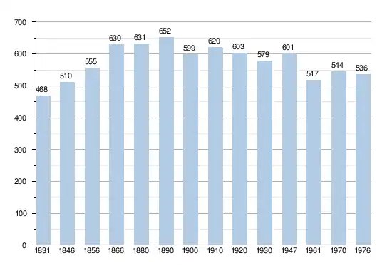 - Source: DGS, 1831 à 1970=recensements population, 1976= habitants au 31 décembre