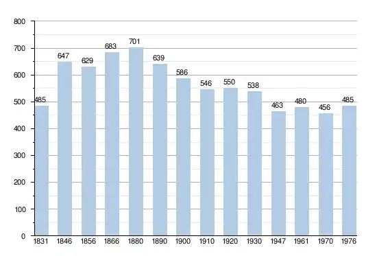 - Sources:INS, Rem:1831 jusqu'en 1970=recensements, 1976= nombre d'habitants au 31 décembre