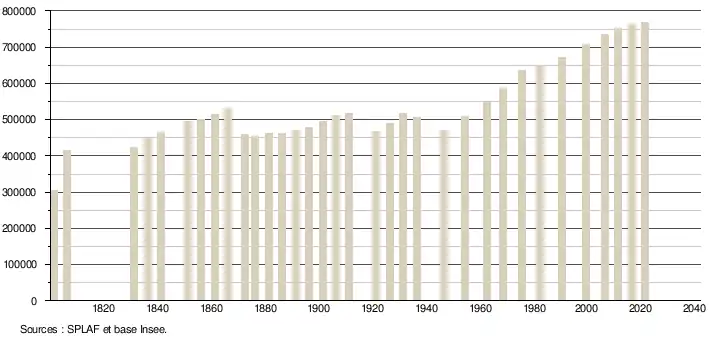En 2021, le département comptait 767 083 habitants[Note 2], en augmentation de 0,59 % par rapport à 2015 (France hors Mayotte : +1,84 %).