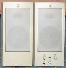 Apple a équipé d'une paire de haut-parleurs transparents sphériques/globulaires Sound Stick 2.1 modèle M7963 le Power Mac G4 Cube, sorti le 19 juillet 2000. Ils utilisaient une interface USB personnalisée et travaillaient à l'origine avec les écrans de moniteur G4 Cube, Power PC et ADC/ADP. Ils fonctionnent jusqu'à OSX 10.6.4 Snow Leopard. Ils ont été conçus par Jonathan Ive et créés en partenariat avec Harman Kardon, et étaient des versions agrandies des haut-parleurs Odyssey fournis avec l'iMac G3[5],[6],[7].