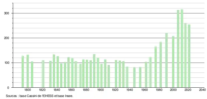 - Fiches Insee - Populations légales de la commune pour les années 2006, 2007, 2008, 2009, 2010, 2011, 2012, 2013, 2014, 2015, 2016, 2017, 2018, 2019, 2020 et 2021.