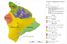 Hawaï s'est formée par empilement de cinq volcans boucliers qui sont entrés en éruption de manière séquentielle, les uns recouvrant partiellement les autres. Ces volcans sont le résultat de l'activité du point chaud d'Hawaï, et sont, du plus ancien au plus récent :