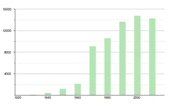 | 1970 | 9 052 | ▲ +331,05 % | |