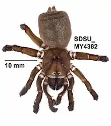 Hebestatis theveneti, unique représentant du genre Hebestatis, est une espèce d'araignées mygalomorphes de la famille des Halonoproctidae[1].