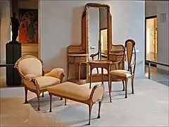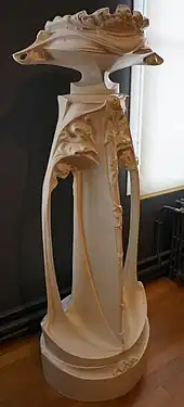 À l’instar du cadre architectural global de ses édifices, la conception intrinsèque de ses objets d’art procède du même idéal de continuité formelle, tant par la masse (comme dans le vase des Binelles, produit par la Manufacture nationale de Sèvres vers 1903, où les différentes parties de l’objet fusionnent en un tout unique) que par la ligne (comme dans le dessin de ses meubles, à la silhouette gracile et harmonieuse)[5].