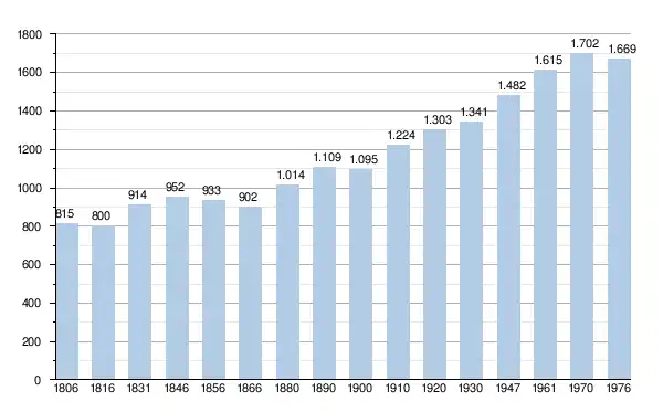 - Sources : INS, Rem. : 1831 jusqu'en 1970 = recensements, 1976 = nombre d'habitants au 31 décembre[2].
