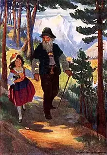 L'histoire se déroule en Suisse et en Allemagne, au XIXe siècle. Heidi, une petite fille de sept ans, est orpheline depuis quatre ans. Elle a été recueillie par sa tante Dete, la sœur de sa mère, qui travaille à Bad Ragaz. Lorsque celle-ci trouve un travail à Francfort, ne pouvant pas emmener Heidi avec elle, elle la confie à son grand-père paternel, qui vit dans un chalet de montagne en Suisse, à l'écart d'un village dont les habitants le voient comme un homme bourru et marginal. On le surnomme « l'Oncle de l'Alpe », et la rumeur populaire prétend qu'il aurait tué quelqu'un par le passé. Il s'attendrit au contact de la fillette et s'occupe d'elle comme si elle était sa propre fille, lui donnant le peu qu'il possède et, par exemple, en lui confectionnant des objets à sa mesure et en lui fournissant tout ce qui lui est nécessaire. Heidi fait la connaissance de Pierre (Peter), le jeune gardien de troupeau qui s'occupe des chèvres des villageois et de son grand-père. Ils deviennent bientôt d'excellents amis. Les deux enfants vivent de nombreuses aventures aux alpages, où Heidi accompagne Pierre et prend soin de sa chevrette préférée, Blanchette. Heidi prend un plaisir énorme à la vie de montagne, et bientôt elle est attachée à son grand-père et à cette vie rude.