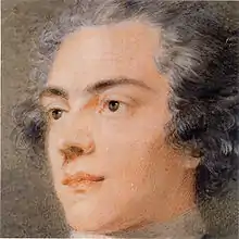 - le portrait en miniature dont on voit un agrandissement ci-contre est celui d'un des frères Harrach. Il a été vendu par Christies' à Londres le 28 novembre 2006 (no 135 du catalogue). Il faisait partie de la collection Holzscheiter. Un autre portrait, vendu par Sotheby's également à Londres le 28 mars 1977 sous le no 75 du catalogue, est encore conservé dans la collection Holzscheiter.