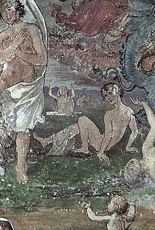 - Jésus et la femme adultère, huile sur bois, 113 × 91,5 cm, vers 1521, Cologne, musée Wallraf-Richartz (à gauche de l'illustration le chiffre 5[5],[6])