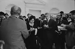 Helen Thomas en 1976, à la salle de presse de la Maison-Blanche. | |