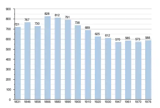 - Sources : INS, Rem. : 1831 jusqu'en 1970 = recensements, 1976 = nombre d'habitants au 31 décembre.