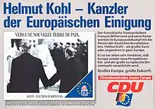 Le , Helmut Kohl célèbre, au mémorial de Verdun, avec François Mitterrand le souvenir des soldats français et allemands tombés durant la Première Guerre mondiale. L'image des deux hommes d'État main dans la main durant la cérémonie a fait le tour du monde et est devenue le symbole de la réconciliation franco-allemande[2].