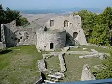 Les ruines du château de Henneberg se trouve sur un rocher aux versants abrupts, à l'est du village, au-dessus d'une voie historique reliant les villes de Meiningen et Wurtzbourg.