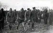 De g. à d. : colonel Alfred Jacobson, chef d'escadron Jacques Baratte, colonel Henri Adeline, lieutenant-colonel Georges Moressée