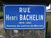 Henri Bachelin est un écrivain français né le à Lormes (Nièvre) dans le quartier de La Grange Billon au domicile de ses parents[1]. Il est décédé à Paris (17e) le [2]