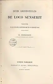 Cette même année, il est nommé professeur au lycée David-d’Angers d’Angers. Deux ans plus tard, il est muté au lycée Blaise-Pascal de Clermont-Ferrand[9],[10]. Il publie en 1884 des morceaux choisis de Lucrèce, accompagnés d’une étude critique du texte et de la philosophie du poète, ouvrage qui sera plusieurs fois réédité. En parallèle à son enseignement, Bergson trouve le temps de mener des travaux personnels. Il rédige l’Essai sur les données immédiates de la conscience qu’il soumet en même temps qu’une courte thèse en latin sur Aristote, Quid Aristoteles de loco senserit (« L'idée de lieu chez Aristote »), pour son diplôme de docteur ès lettres qu’il obtient en 1889. Sa thèse principale est publiée la même année par l'éditeur parisien Félix Alcan dans la série La Bibliothèque de philosophie contemporaine.