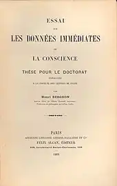 Dans son Essai sur les données immédiates de la conscience (texte de 1889 présenté comme thèse de doctorat), Bergson oppose durée de la conscience et temps scientifique, comme l'explique William Marceau :
