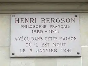 Henri Bergson, né le dans le 9e arrondissement de Paris, et mort le dans le 16e arrondissement de Paris[1],[2],[3], est un philosophe français.