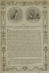 Les Impériaux sont contraints de battre en retraite et de repasser le Rhin. Louis XIV donne de nouveau à Turenne le commandement de la campagne de 1675, où il se trouve de nouveau face à Montecuccoli. Pendant deux mois, tous deux déploient leurs dons de manœuvriers. Lors de la bataille de Salzbach, enfin Turenne est sur le point d’amener son adversaire sur les positions qu’il juge souhaitables pour une bataille décisive, lorsqu'il est tué par un boulet de canon le . Raimondo Montecuccoli se serait alors écrié : « Il est mort aujourd'hui un homme qui faisait honneur à l'Homme ! ». Selon les mémorialistes du temps, la France entière le pleure, et le peuple rassemblé sur les routes honore « le bon Monsieur de Turenne » lors du passage du convoi funèbre vers Paris[13]. Son oraison funèbre fut prononcée par Fléchier en l'église Saint-Eustache[14].