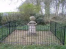 Un monument constitué d’un socle soutenant une urne, appelé la pierre du duel, commémorant le duel, est dressé sur Norwich Road à Cawston.