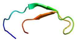 L'hepcidine est codée par le gène Hamp localisé sur le chromosome 19[12]. C'est un polypeptide composé de 25 acides aminés et qui présente quatre ponts disulfures intracaténaires.