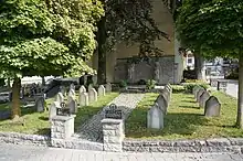 Au centre du village, à côté de la mairie se trouve le cimetière avec son monument aux morts entouré de deux églises, l'ancienne du monastère et une autre. Une ancienne abbaye bénédictine se trouve sur son territoire.