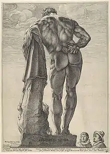 De nombreuses gravures ont fait la renommée de l'Hercule Farnèse. En 1562, la découverte était déjà incluse dans l'ensemble des gravures du Speculum Romanae Magnificentiae (« Miroir de la magnificence de Rome ») et les connaisseurs, artistes et touristes étaient émerveillés devant l'original qui se trouvait dans la cour du palais Farnèse, protégé sous l'arcade. En 1590-1591, lors de son voyage à Rome, Hendrik Goltzius esquisse la statue dans la cour du palais. Plus tard (en 1591), il reproduit la vue arrière moins courante, dans une gravure qui met l'accent sur la forme musculaire déjà exagérée, avec des lignes renflées et effilées qui débordent sur les contours. Le jeune Pierre Paul Rubens a fait des croquis rapides des plans et de la masse de la statue d'Hercule. Avant la photographie, les gravures étaient le seul moyen de mettre l'image entre de nombreuses mains.