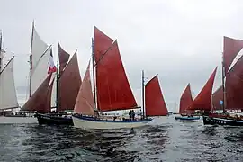 - Entre le grand mât et le mât d'artimon : la voile d'étai d'artimon (43 m2) et la voile d'étai de perroquet de fougue (61 m2)