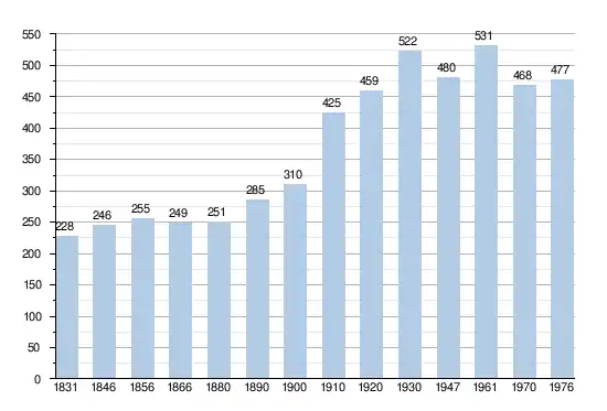 - Sources : INS, Rem. : 1831 jusqu'en 1970 = recensements, 1976 = nombre d'habitants au 31 décembre[2].