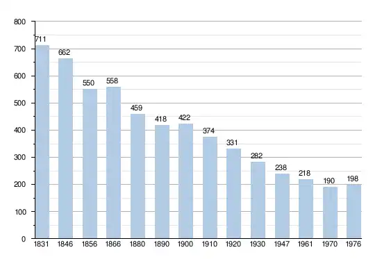 - Sources : INS, Rem. : 1831 jusqu'en 1970 = recensements, 1976 = nombre d'habitants au 31 décembre.