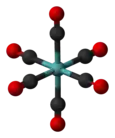 ![]() Structure de l'hexacarbonyle de molybdène ![]() Poudre de cristaux de Mo(CO)6 |
