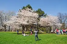 Le parc compte plusieurs plantations de cerisiers du Japon, qui attirent chaque année des milliers de visiteurs de fin avril à début mai. La plantation principale est un bosquet d'arbres le long d'une route partant du Grenadier Café et menant à l'Étang du Grenadier. Les autres plantations se trouvent le long de West Road, sur la rive de l'étang et à l'ouest de l'aire de jeux Jamie Bell. En 1959, le premier cerisier japonais Somei-Yoshino a été planté dans High Park, un cadeau des citoyens de Tokyo. Une plaque marque l'endroit où, en 1959, les arbres ont été présentés par l'ambassadeur du Japon au maire de Toronto, Nathan Phillips (en). Au total, plus de 2 000 cerisiers ont été offerts à Toronto[39].
