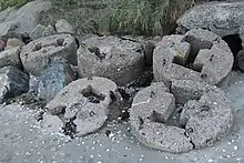 - « Le rubanement de ces métagabros, d’échelle millimétrique à centimétrique, est souligné par l’alternance de niveaux sombres riches en amphibole et de niveaux clairs riches en plagioclase. Il s’agit vraisemblablement d’un litage d’origine magmatique, du moins pour partie » Cf E. Égal, É. Thomas, P. Guennoc... [et al.], Carte géologique de la France à 1/50 000. no 243, Saint-Brieuc, éditions du BGM, 2005, p. 73.