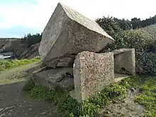 - Au nord, présence de filons de dolérite qui s'altèrent en boules, d'orientation N.-S. La pointe nord montre l'affleurement de « nombreuses coulées surtout massives, des sills et des métasédiments surtout gréso-feldspathiques… Au-delà encore, après des niveaux d'amphibolite et de gneiss, dans la falaise très basse, on observera un poudingue à très gros galets (taille de la tête d'un homme) non allongés, faits de diorite quartzique ». Cf Hubert Lardeux, op. cit., p. 39.