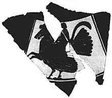 Ce motif ne serait pas forcément une création de l'antiquité grecque. Une analyse des textes d'Aristophane suggère qu'il serait issu du Moyen-Orient. Les costumes portés par les personnages représentés sur les poteries semblent asiatiques[2]. L'origine perse est en effet évoquée par Aristophane, par ailleurs, le coq est un animal sacré dans la culture perse[9]. Les avis divergent et d'autres sources indiquent toutefois que ce motif n'est pas oriental[6]. Les animaux hybrides de Mésopotamie et de Grèce sont proches sur bien des points[8].