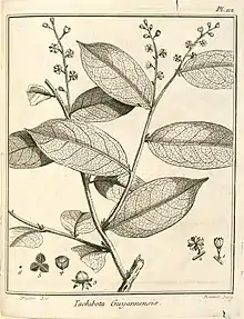 En 1775, le botaniste Aublet propose le protologue suivant pour Tachibota guianensis Aubl., 1775 (= Hirtella racemosa Lam.)[15] :