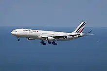 En , la compagnie introduit les premiers Airbus A330-200 sur les lignes Paris-Boston et Paris-Toronto. Propulsé par le moteur CF6-80E1, il remplace les Airbus A310 et Boeing 767-300ER[49]. Airbus honore ainsi une commande passée par Air France le [50] et qui vise à moderniser et rationaliser sa flotte de long-courrier, le dernier A310 étant retiré de la flotte le et le dernier Boeing 767-300ER le . Ces nouveaux appareils sont les premiers pourvus de caméra embarquées qui permettent aux voyageurs de suivre par écran interposé les différentes étapes du vol[51].