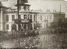 En décembre 1917, après la révolution d'Octobre, dans la ville, avec comme centre d'affrontement les alentours de la Maison Blanche, des combats acharnés ont eu lieu entre les gardes rouges et les cadets pendant 9 jours, au cours desquels plus de 300 personnes sont mortes et environ 700 ont été blessées[54]. À la fin des combats, le pouvoir soviétique s’établit temporairement. Les 13 et 14 juin 1918, une tentative infructueuse de soulèvement antisoviétique eut lieu à Irkoutsk. Le 11 juillet 1918, après des affrontements mineurs, la ville fut prise par des unités des légions tchécoslovaques et du gouvernement provisoire sibérien. Le pouvoir civil fut temporairement transféré au conseil municipal[55].