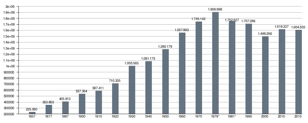 | Évolution démographique de la population de Barcelone (1857-2015) |