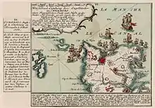 Le , Thomas Kyriell débarque à Cherbourg à la tête de 3 000 soldats pour reprendre le Cotentin et le Bessin[23]. Dernière possession anglaise en Normandie à la suite de la bataille de Formigny, la forteresse est une fois de plus assiégée. Les troupes françaises parviennent à tromper les Anglais en attaquant la forteresse par la grève, à l’aide de batteries sur pilotis, la poudre et les canons enveloppés dans des peaux enduites de suifs pour les rendre imperméables[1]. Le , les remparts cèdent sous les attaques, et Jacques Cœur négocie la reddition qui intervient deux jours plus tard, par le versement de 2 000 écus à la garnison, et la libération du fils de Thomas Gower, commandant anglais du château. Jean V de Bueil, fait amiral de France après la mort lors de ce siège de Prigent de Coëtivy, reçoit le gouvernement de la place. Il répare les murailles et complète le système défensifs par une tour à trois batteries du côté de l'embouchure de la Divette, la tour dite « des Sarrasins »[Note 2]. En raison des souffrances de la population cherbourgeoise, et contre le dépeuplement de la place forte, Louis XI exempte les habitants d'impôts en 1464, règle conservée jusqu'au règne de Louis XV[24]. La Royauté fait du , chute de la dernière possession anglaise sur le territoire français qu'était Cherbourg, une fête nationale[25].